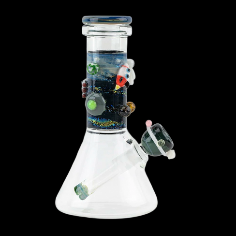 The Empire Glassworks 8″ Galaxy Baby Beaker showcases passionate glassmaking with a cosmic-inspired aesthetic. Standing about 8 inches tall, this compact beaker-style glass piece features a striking galaxy theme with deep swirls, vibrant colors, and shimmering accents that evoke star fields and interstellar motion. Crafted from high-quality borosilicate glass, it balances visual appeal with durable construction, making it a standout piece for collectors and lovers of artisanal glass.