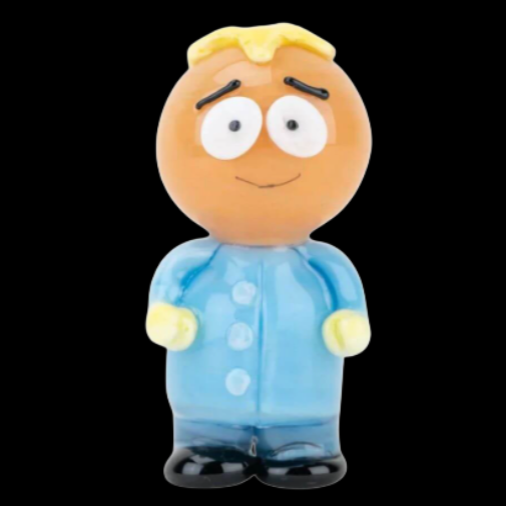 Introducing the Empire Glassworks Margarine Man Hand Pipe! This delightful tribute to everyone's favorite character from South Park is a true conversation starter and a must-have for collectors. The hand pipe, featuring a bright blue outfit and signature buttery yellow hair, is crafted with meticulous attention to detail, resembling Butters in the most adorable way.