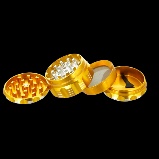 When it comes to intentional design, the Viking Axe Steampunk Cog grinder overshoots this criteria. The groves from the cog-like "Steampunk" inspired design makes it super easy for the user to grip and grind. It comes with 4 parts