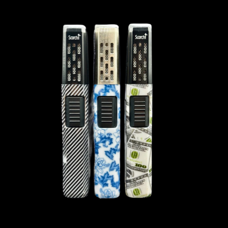The Scorch Torch Single Flame Long Lighter is a compact, powerful lighter designed for precision flame applications. Perfect for dabbing, culinary use, or lighting cigars and candles, this single flame lighter provides a steady, focused flame with ease of use and durability.