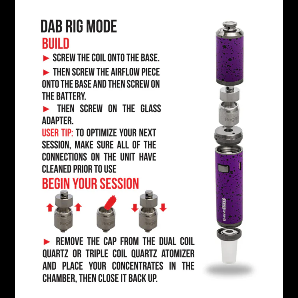 This device includes Quartz Dual Coil (QDC) and Quartz Triple Coil (QTC) atomizers for smooth, pure wax vapor, along with the XTAL tip atomizer which enables nectar collector (dab straw) function by allowing direct dipping into concentrate jars. It even includes a 14mm glass connector and 10/19 adapter so you can hook it up to water pipes for a dab rig experience, benefiting from water filtration.