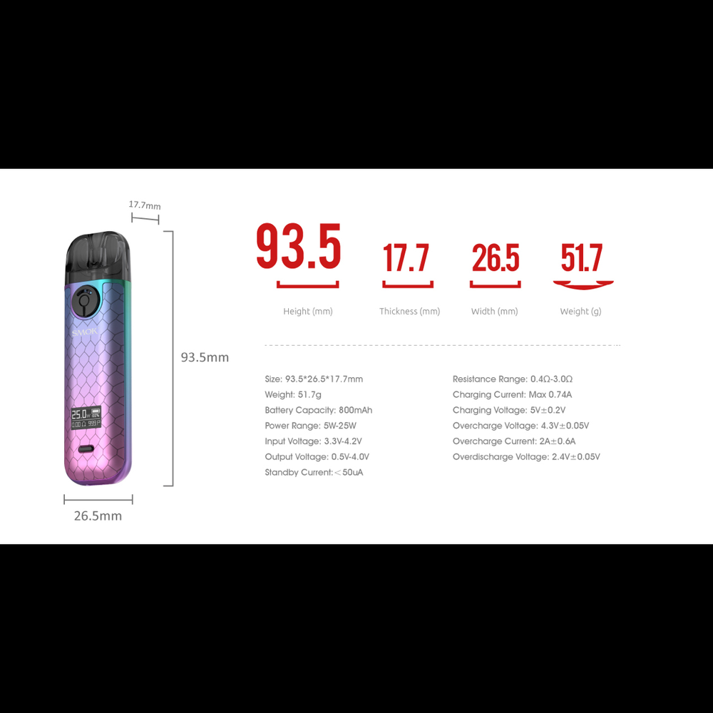 0.49-inch OLED Display: Clear and bright screen to monitor battery life, wattage settings, and more.