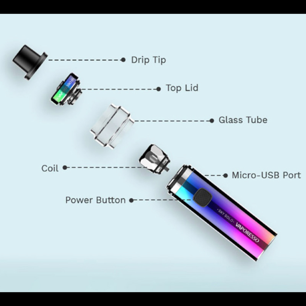 The Vaporesso Sky Solo Plus Starter Kit is a powerful and user-friendly all-in-one vape pen designed to deliver exceptional performance and flavor. With its sleek design, advanced features, and compatibility with Vaporesso's GT coil series, it's an excellent choice for both beginners and experienced vapers seeking a reliable and satisfying vaping experience. The Vaporesso Sky Solo Plus boasts a sleek and modern design, available in various colors to suit your personal style. Its compact size and ergonomic shape ensure a comfortable grip, making it ideal for on-the-go vaping.