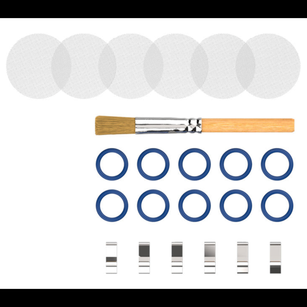 Kit Includes: Multiple silicone rings, mouthpiece parts, and other wear components
